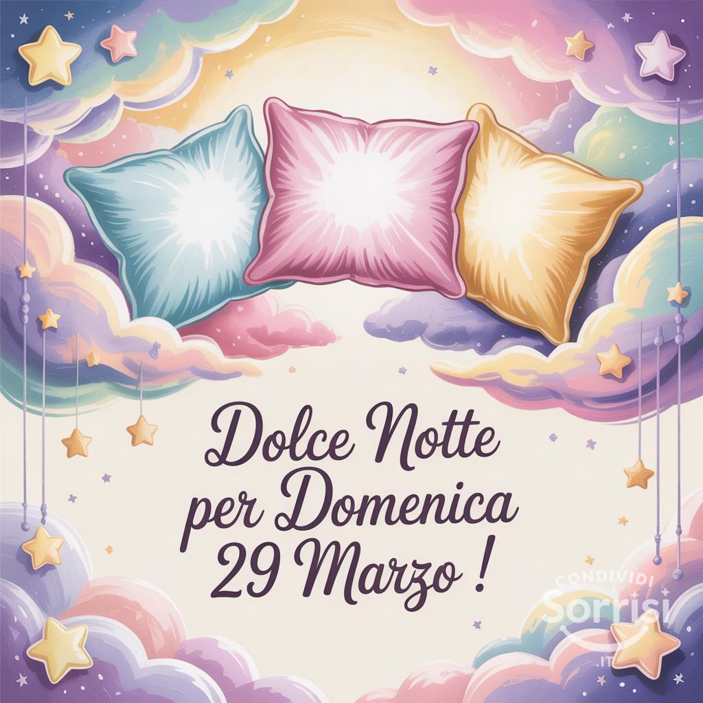 Dolce notte per domenica 29 marzo! ✨ Che i tuoi sogni siano morbidi come cuscini e delicati come ali d'angelo. Riposa sereno! 😇🌙 #buonanotte #domenicadomenica