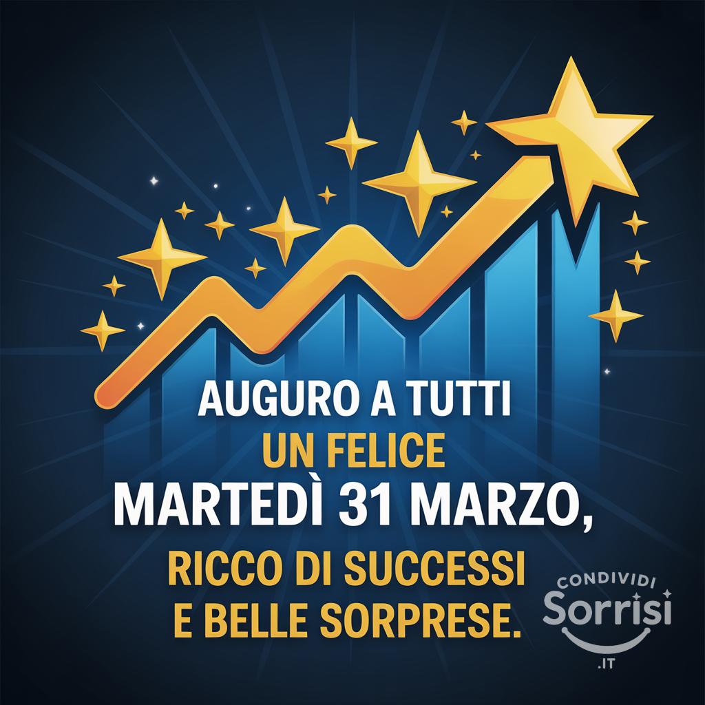 Martedì 31 marzo: un giorno di successi e sorprese ti aspetta! ✨🚀 Illumina la tua giornata con energia e positività. Buon inizio settimana! #Martedì #Successo #Motivazione