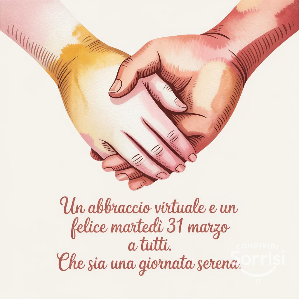 Un abbraccio virtuale per augurarvi un sereno martedì 31 marzo! ✨ Che sia una giornata piena di calore e connessione. 🤗 #BuonMartedi #AbbraccioVirtuale #GiornataSerena