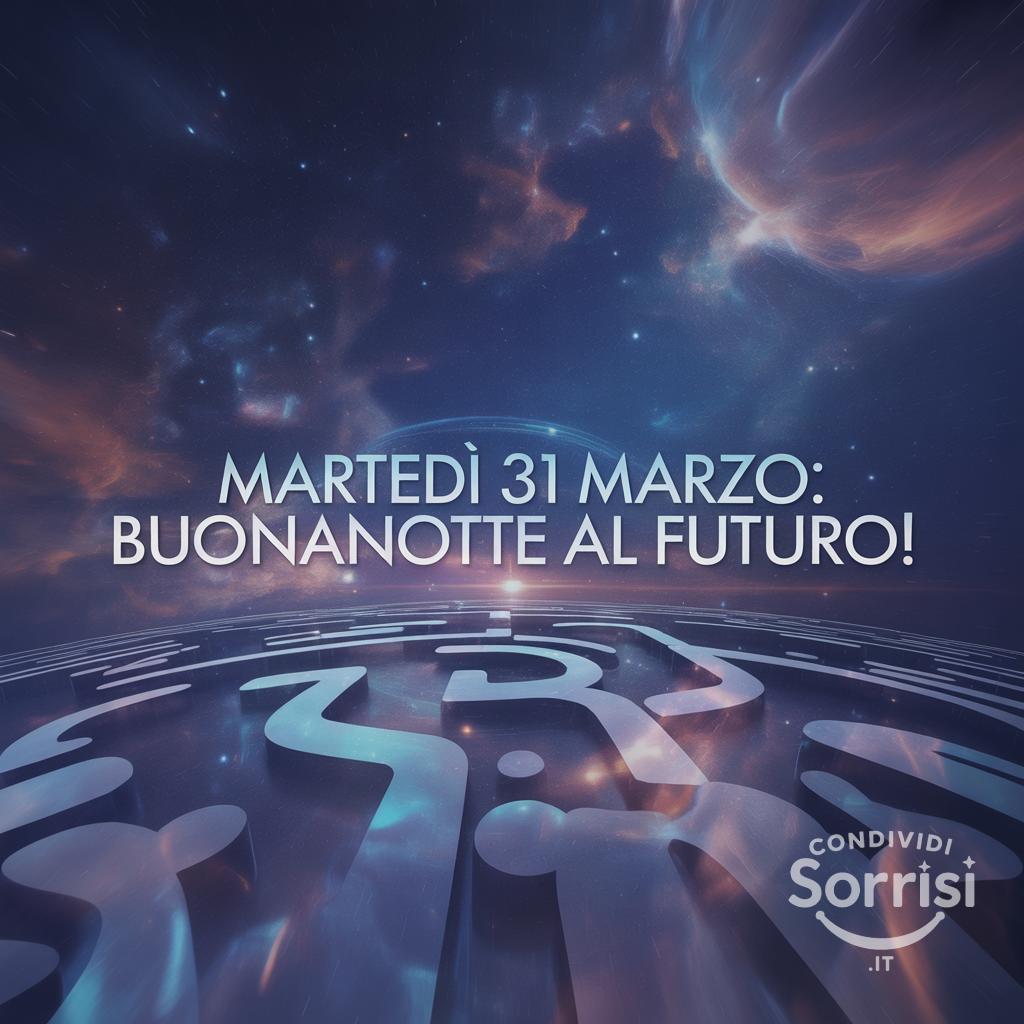 Martedì 31 marzo: buonanotte al futuro! 🌌✨ Sogni stellati e avventure cosmiche. L'ignoto ci attende, pieno di promesse e mistero. #futuro #nottestellata #mistero