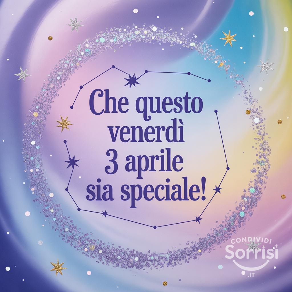 Venerdì 3 aprile, che questo giorno sia magico! ✨ Con glitter e colori pastello, ogni momento brilla. #VenerdìSpeciale #Magia #ColoriPastello