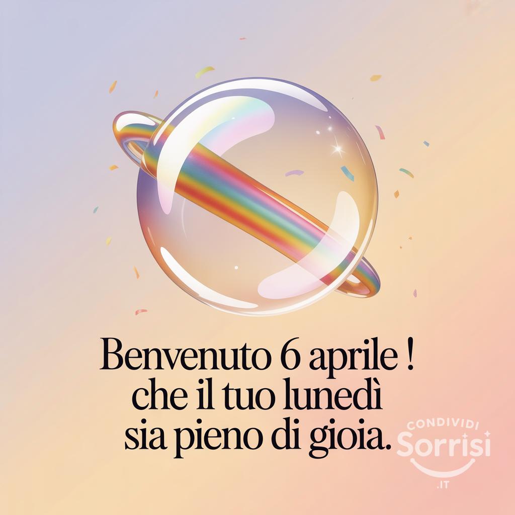 Benvenuto 6 aprile! 🌈 Che questo lunedì sia leggero e gioioso come una bolla di sapone iridescente. Un arcobaleno di colori ti attende! 💖 #buonlunedì #aprile