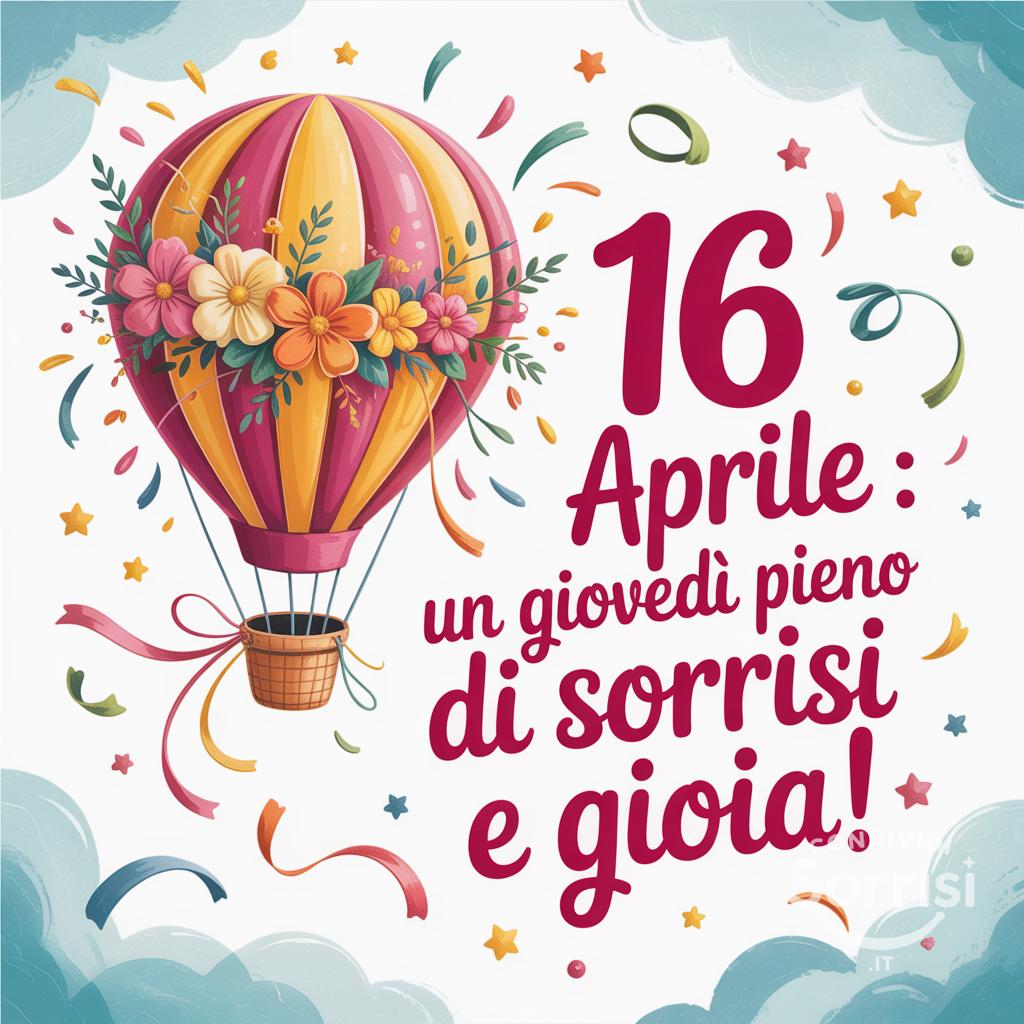 16 aprile: un giovedì pieno di sorrisi e gioia! ✨🎈🌈 Che la vostra giornata sia luminosa e felice! #gioia #sorrisi #buongiorno