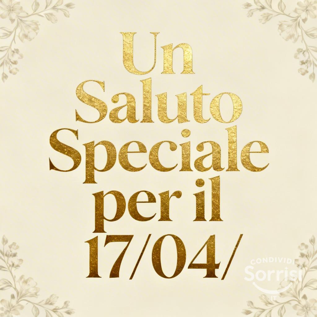 Saluto speciale 17/04: immagine decorativa ed elegante per auguri unici. Perfetta per condividere messaggi personalizzati. Ottimizzata SEO per visibilità.