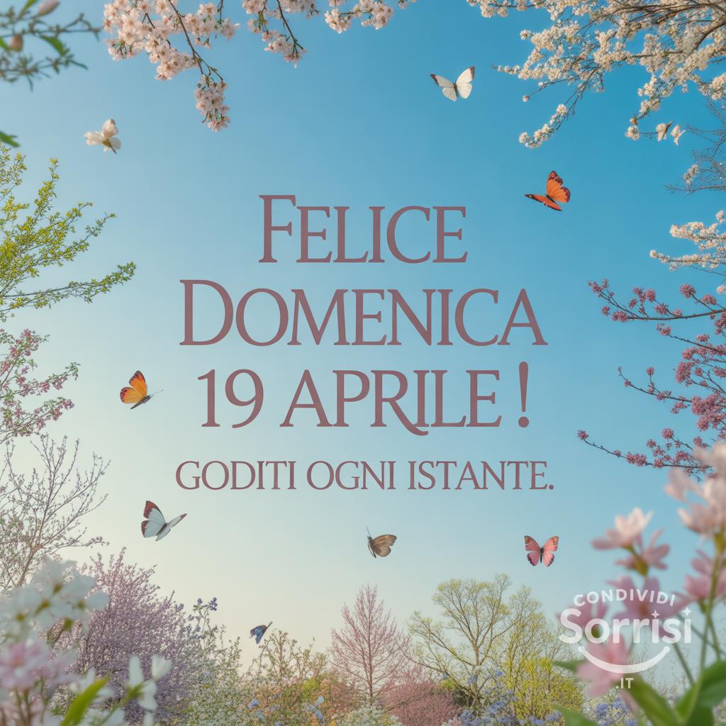 Buona domenica 19 Aprile! 🌸🦋 Che questo giorno sia pieno di gioia, colori e momenti preziosi. Goditi ogni istante sotto il cielo azzurro! #domenica #primavera #gioia #momenti