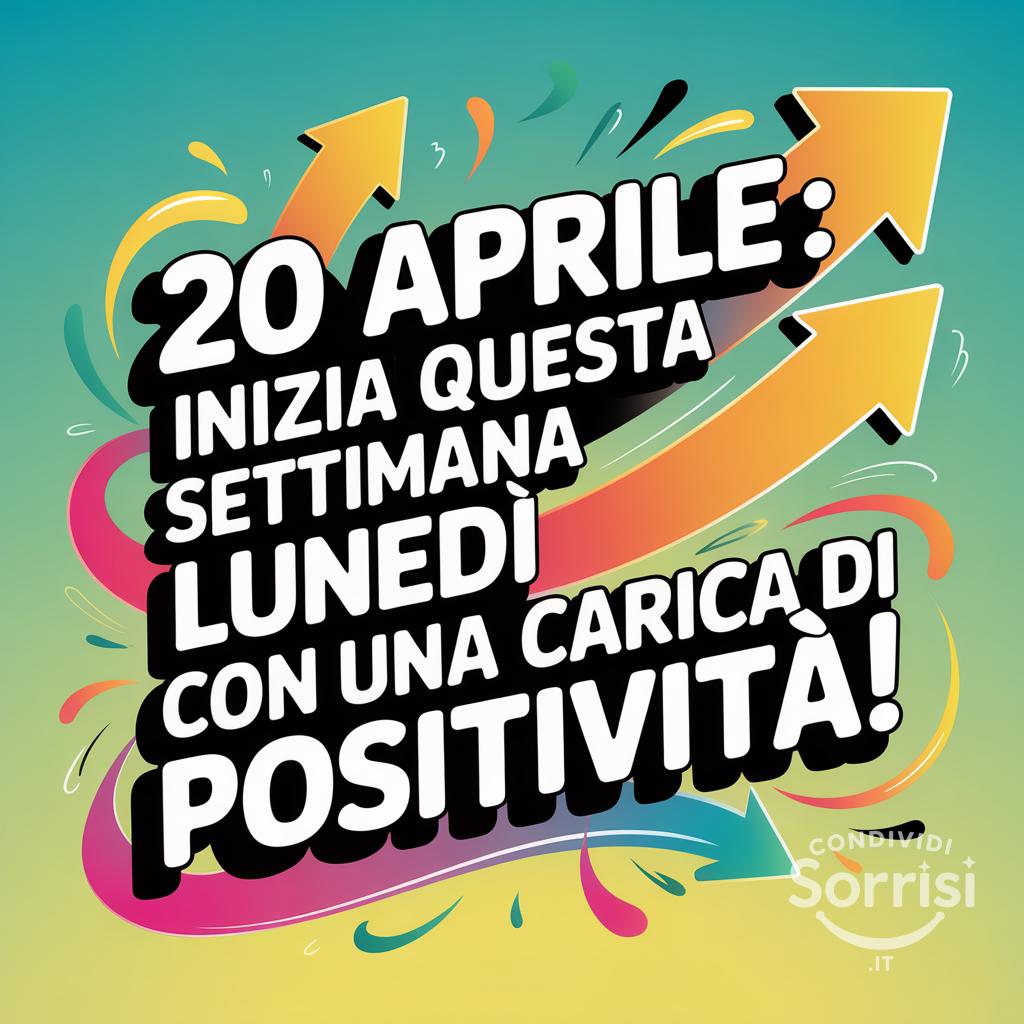 20 aprile: lunedì, nuova settimana, nuova carica di positività! ✨ Supera ogni ostacolo con energia e colore. Non fermarti mai! 💪 #positività #nuovasettimana #motivazione #lunedi
