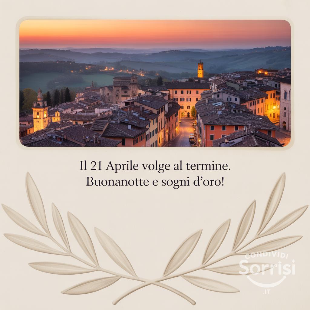 La città saluta il 21 aprile con luci calde e soffuse. Un dolce invito alla quiete. Buonanotte, sogni d'oro! ✨🌙