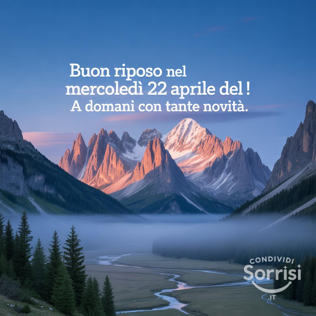 Mercoledì 22 aprile, i monti si svegliano con colori vibranti e speranza. Riposate e preparatevi per le novità di domani! 🌄✨ #nuovoinizio #montagna #alba