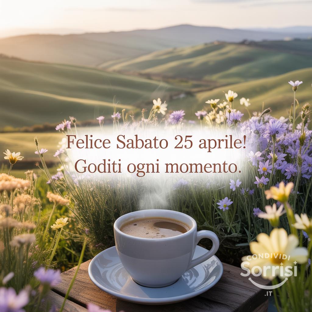 Felice Sabato 25 Aprile 2026! ☀️ Goditi ogni istante di questa giornata serena. Tranquillità e bellezza primaverile ti aspettano. ☕️🌸
