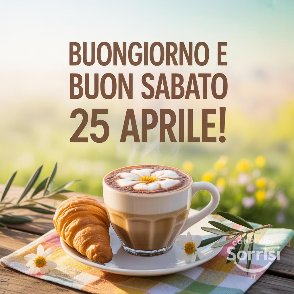 Buongiorno e buon Sabato 25 Aprile 2026! ☀️☕️ Un caffè fumante e profumo di libertà per celebrare questa giornata speciale con la gioia della primavera. #25Aprile #Buongiorno #Primavera #Libertà