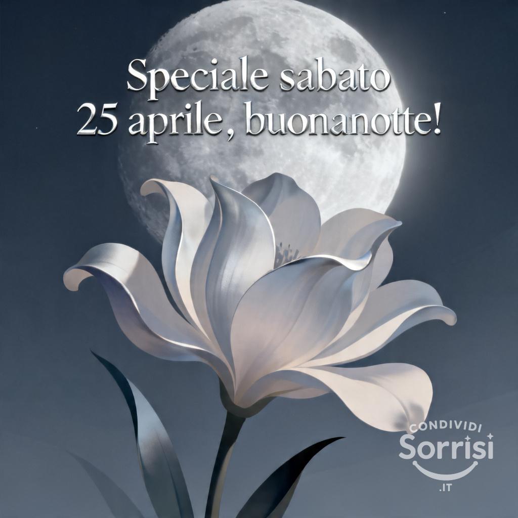Speciale sabato 25 aprile, buonanotte! Eleganza fiore stilizzato, chiaro di luna. Toni sofisticati, sereni. Ottimizzato SEO per immagini.