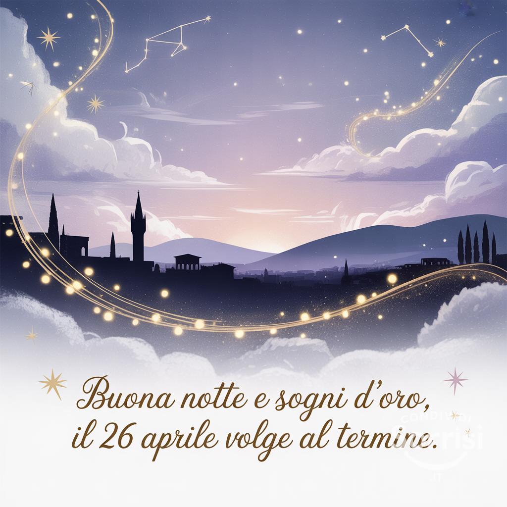Dolce buonanotte, sogni d'oro! ✨ Il 26 aprile svanisce tra nuvole eteree e scintillii celesti. Che la notte ti porti pace e magia. 🌙