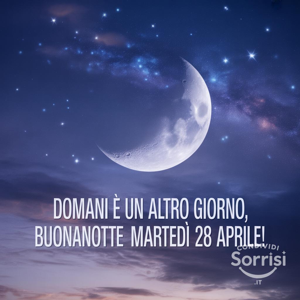 Domani è un altro giorno! ✨ Buonanotte martedì 28 aprile. Che la notte porti serenità e sogni dolci. 🌙 #domanièunaltrogiorno #buonanotte #sogni