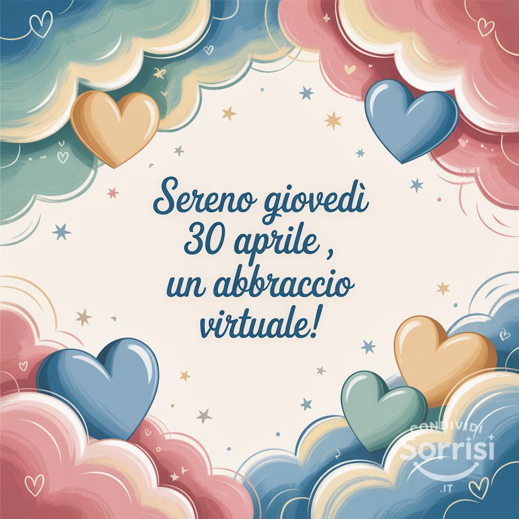 Sereno Giovedì 30 Aprile! Un abbraccio virtuale pieno di dolcezza e affetto, come nuvole soffici in un cielo azzurro. ☁️💖 #giovedi #dolcezza #affetto