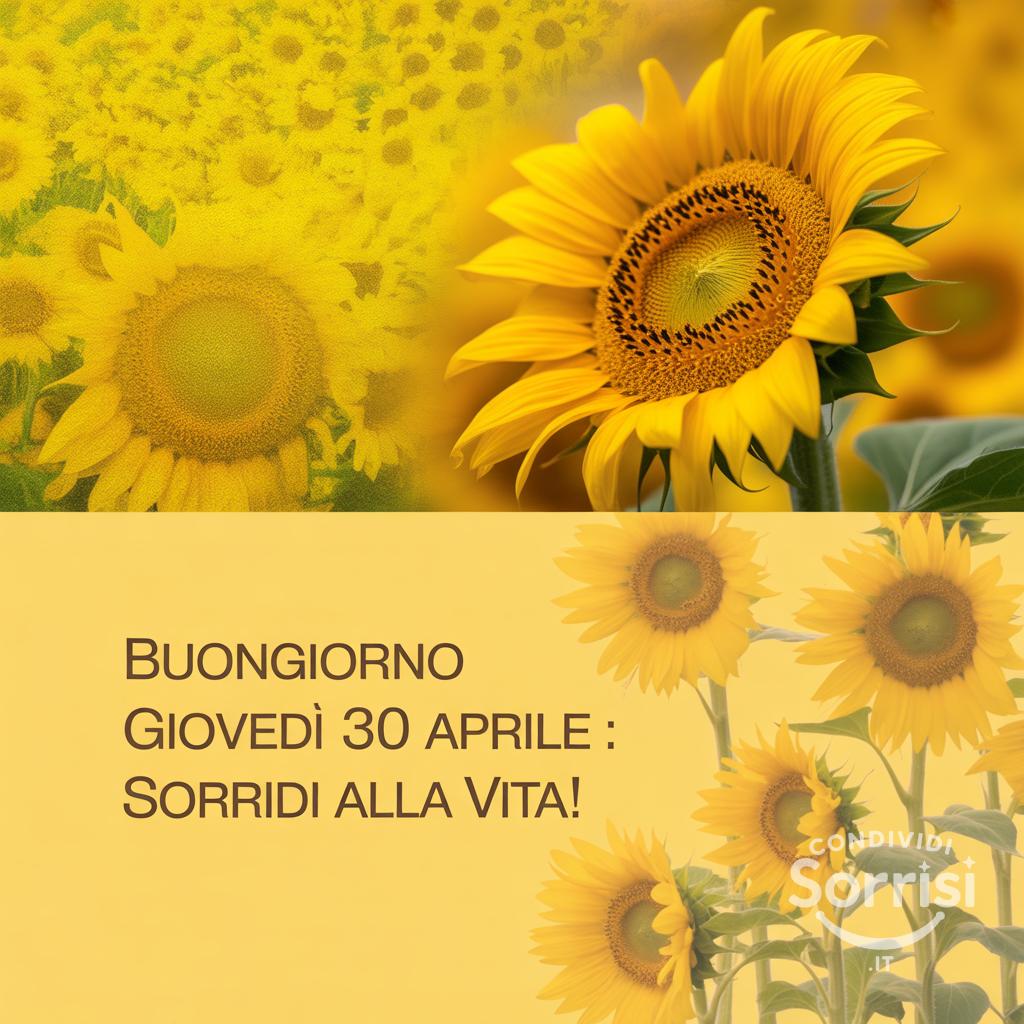 Buongiorno Giovedì 30 Aprile! 🌻 Sorridi alla vita come un girasole che bacia il sole. L'ottimismo ti aspetta! #Buongiorno #Giovedi #30Aprile #SorridiAllaVita #Girasole #Positività